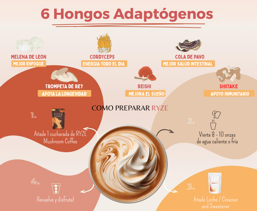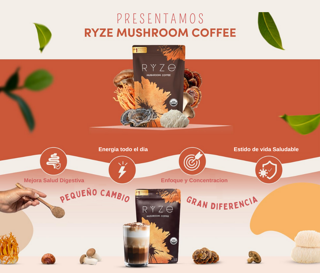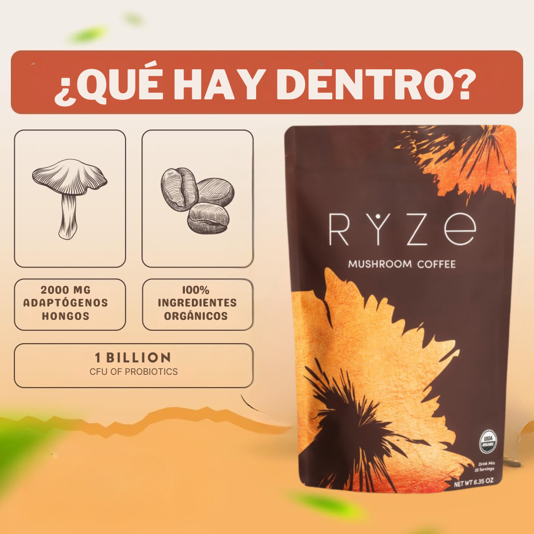 RYZE Mushroom Coffee es una innovadora bebida que combina café con una mezcla de hongos funcionales, diseñada para brindar energía sostenida, claridad mental y beneficios para la salud sin los efectos secundarios del café tradicional. Elaborado con ingredientes naturales como Reishi, Lion’s Mane, Cordyceps, y otros adaptógenos, este café es ideal para quienes buscan mejorar su enfoque, fortalecer su sistema inmunológico y reducir el estrés.